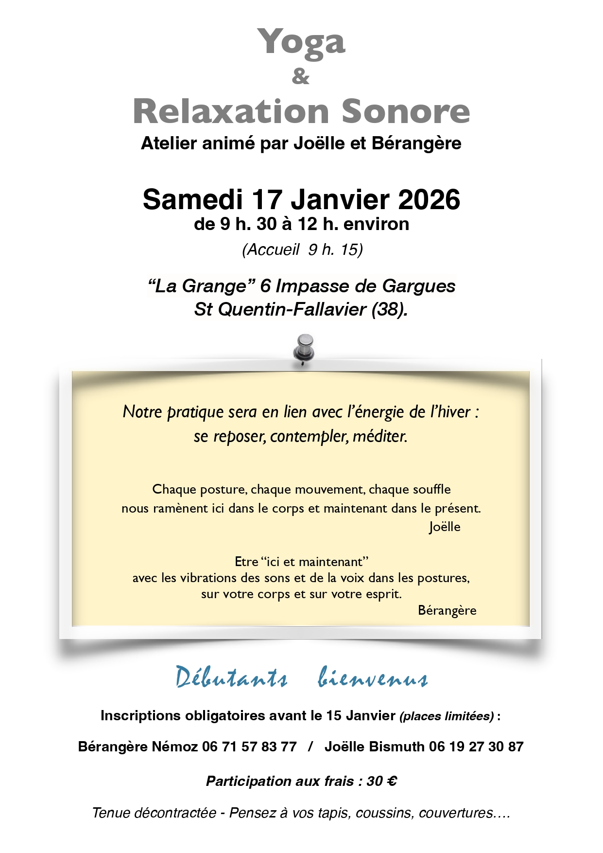 Un engagement à toutes les séances est demandée.